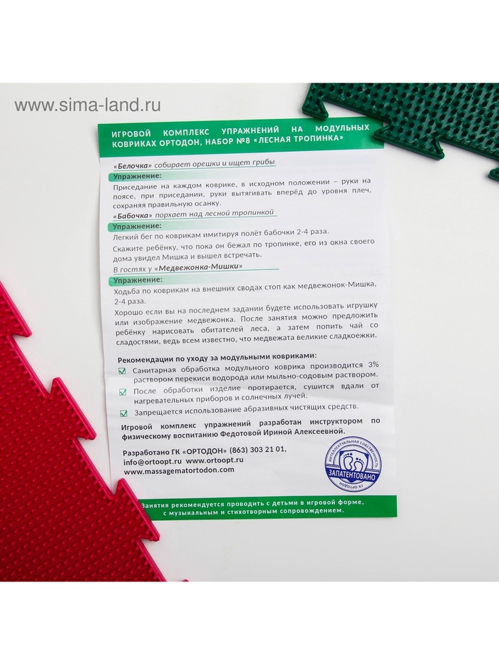 Модульный массажный коврик ОРТОДОН, набор №8 «Лесная тропинка», 8 шт. 10 фото