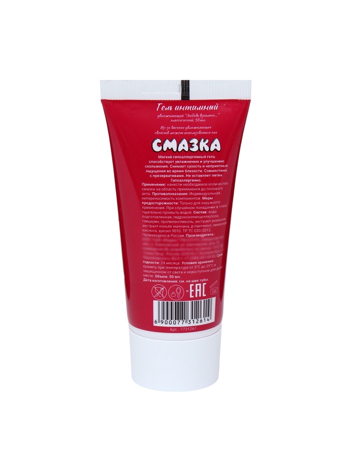 Интимная гель смазка, лубрикант «Любовь взаимна», классическая, 50 мл