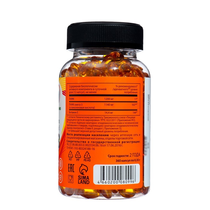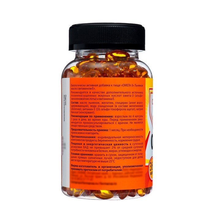Омега-3 льняное масло с витамином Е, 360 капсул по 350 мг