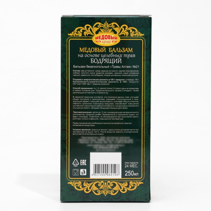 Безалкогольный алтайский медовый бальзам на травах «Бодрящий», стекло, 250 мл