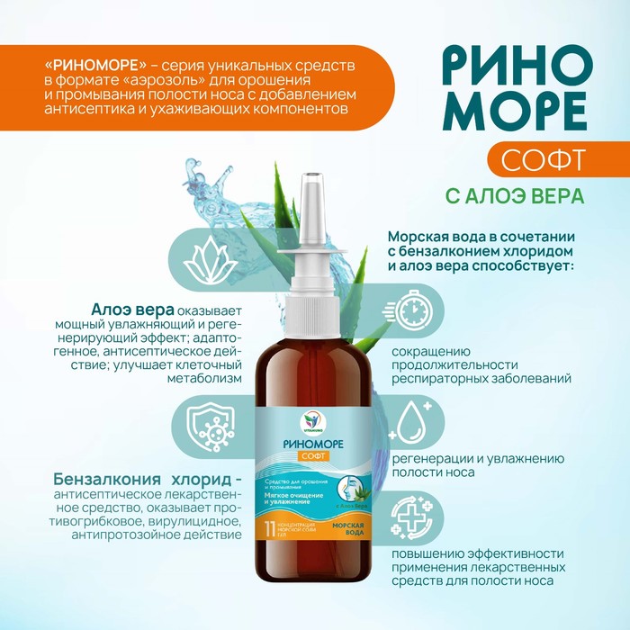 Спрей назальный РиноМоре Софт, с алое вера, 100 мл