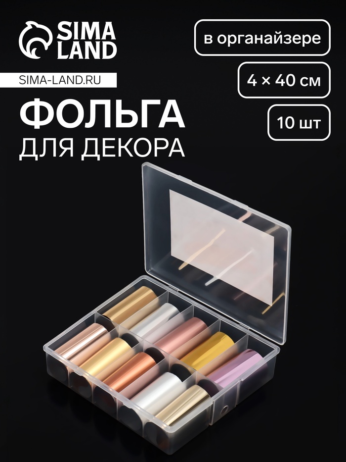 Фольга для ногтей, 4×40 см, 10 шт., в органайзере, МИКС 5 фото