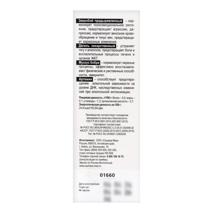 Бальзам «Алтайский», с красным корнем и пантогематогеном, 100 мл