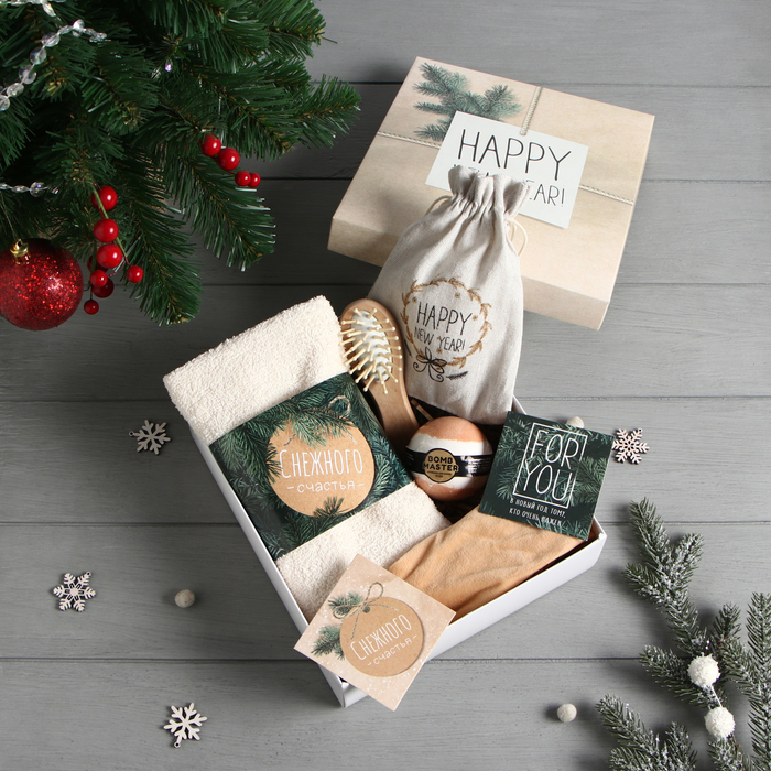 Набор новогодний подарочный "Этель" "С Новым годом" полотенце 30х60см и аксессуары (4 предмета) 10 фото