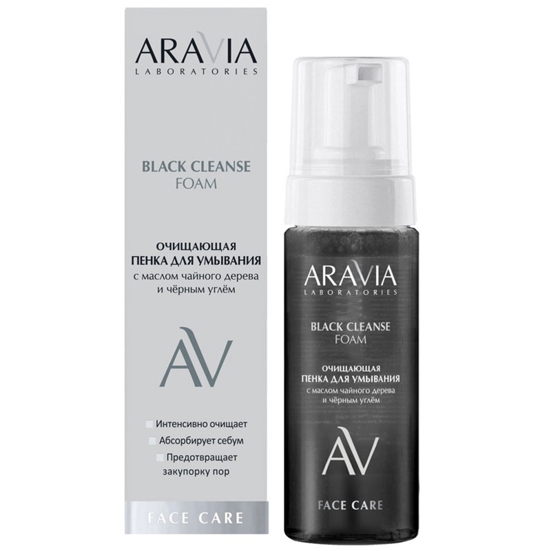 ARAVIA Laboratories Очищающая пенка для умывания с маслом чайного дерева и чёрным углём Black Cleanse Foam 150 мл