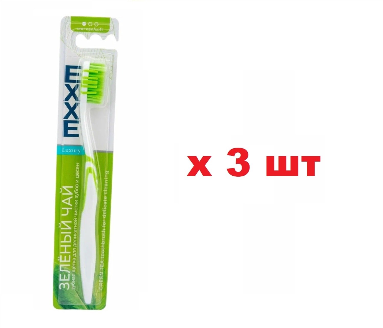 EXXE Зубная щетка Luxury Зеленый чай мягкая щетина 3шт