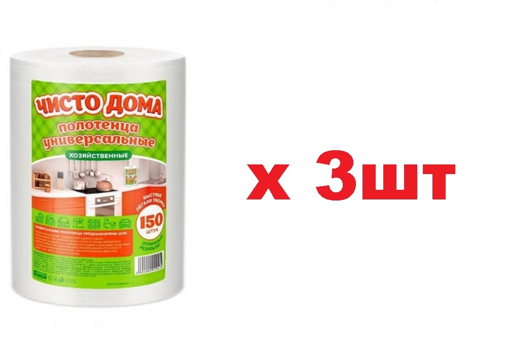 Чисто Дома Полотенца универсальные 150шт Хозяйственные 3шт