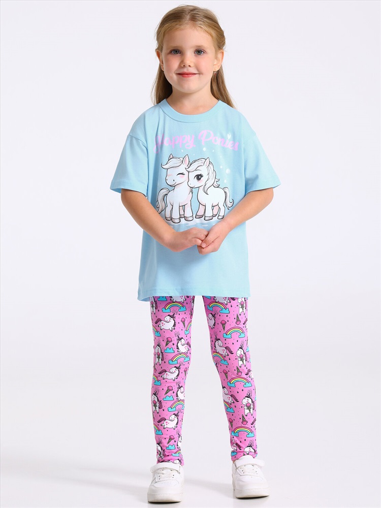 Цвет: светло-голубой+единороги на ярко-розовом / Пони