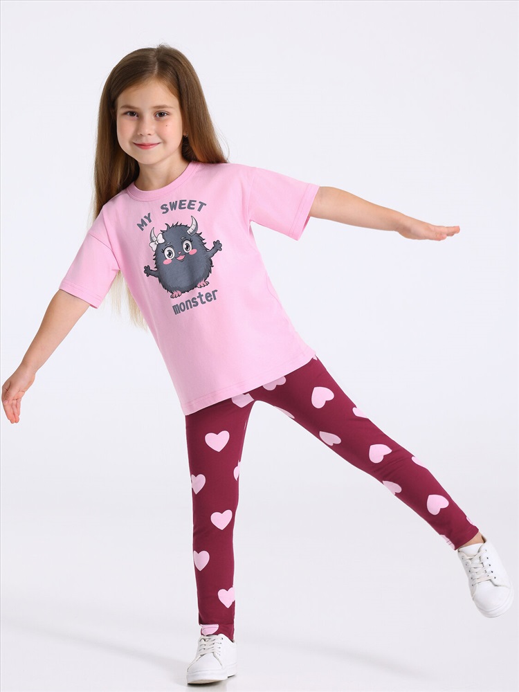 Цвет: светло-розовый+светло-розовые сердца на бордовом / Милый монстр