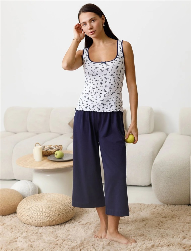 Цвет: цветы на голубой полоске