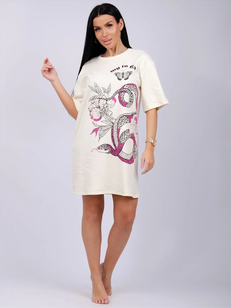 Omsa Рубашка OmD 0412D LOVE Рубашка пижамная удлиненная принт. жен, PL 8 фото