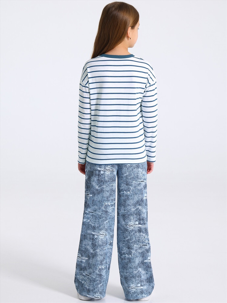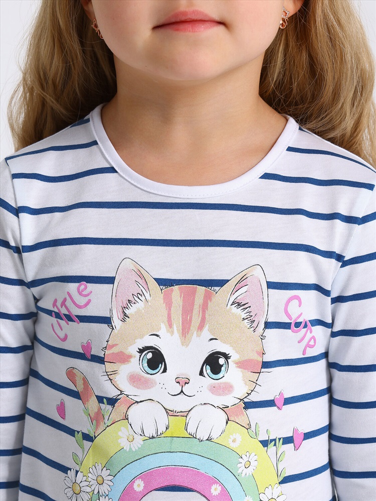 Цвет: полоска белый+синий+белый+темно-синий77 / Кошка с радугой
