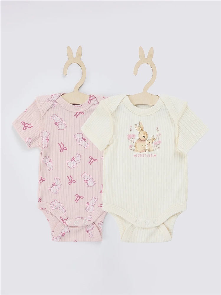 Цвет: молочный +бантики и зайки на розовом