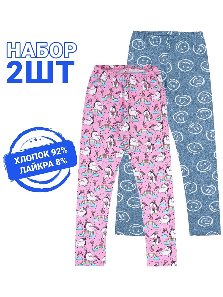 Цвет: единороги на ярко-розовом+смайлики на джинсе