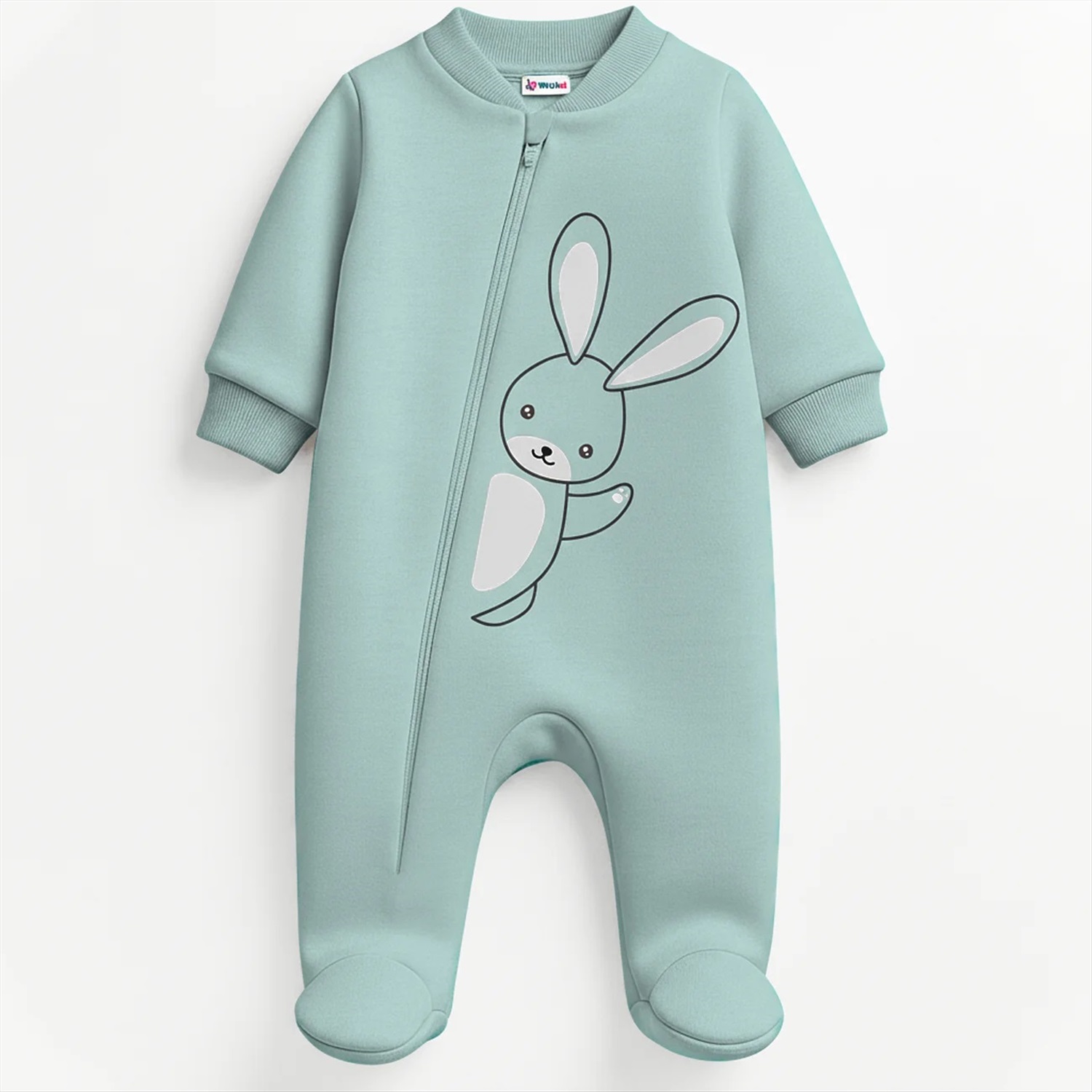 Цвет: оливковый хаки, милые зайчики