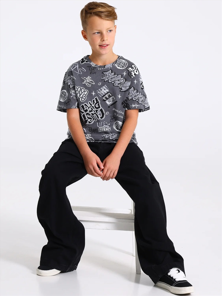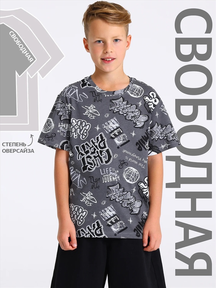 Цвет: сливки1+черно-белые граффити на сером / Алтай