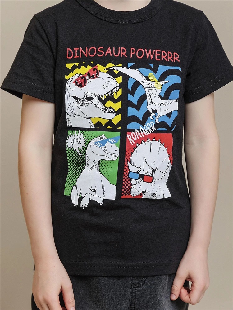 Цвет: цветные фигурки динозавров на темно-сером