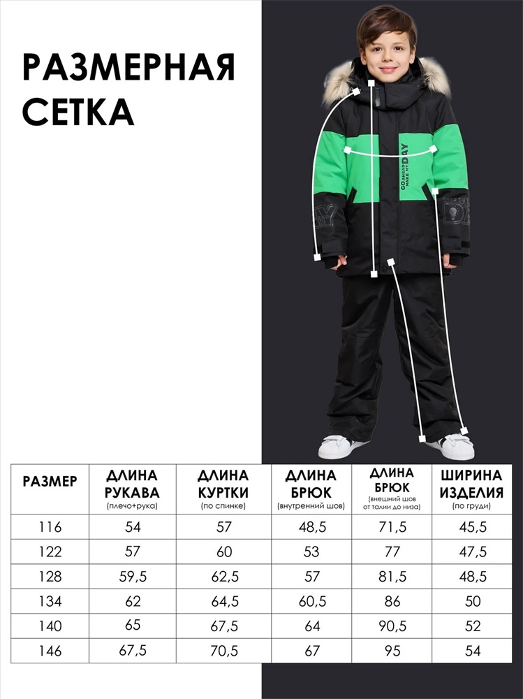 Размер: 110-56, 116-60, 122-64, 128-64, 134-68, 140-68, 146-72