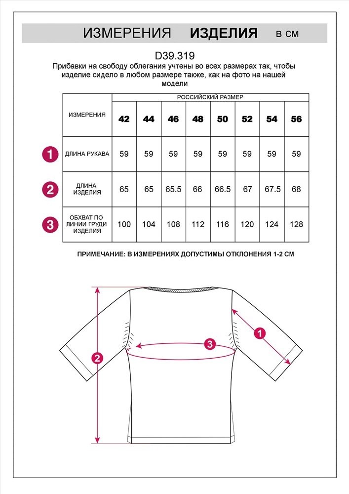 таблица размеров