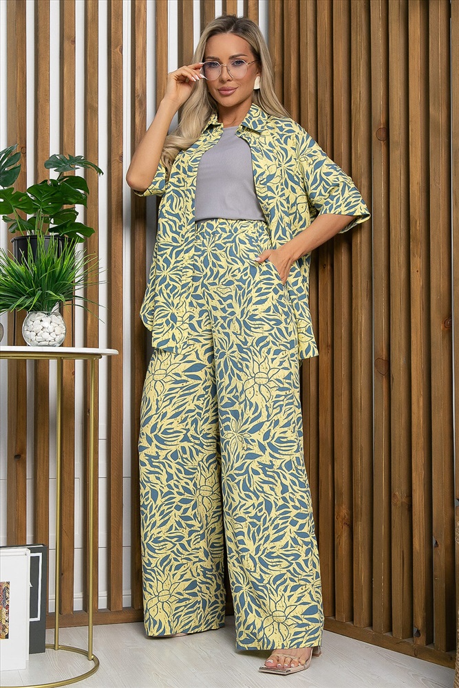 синий, блуза - бежевый