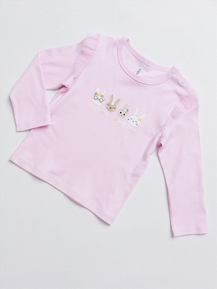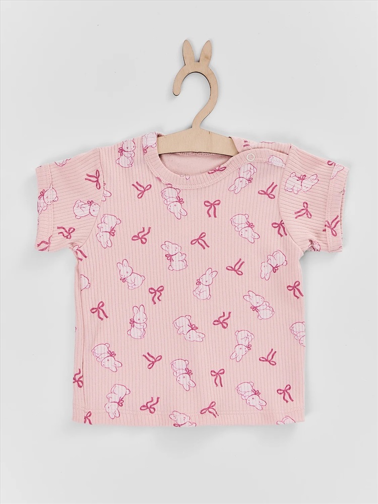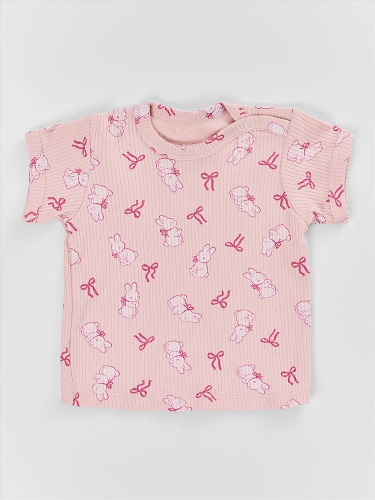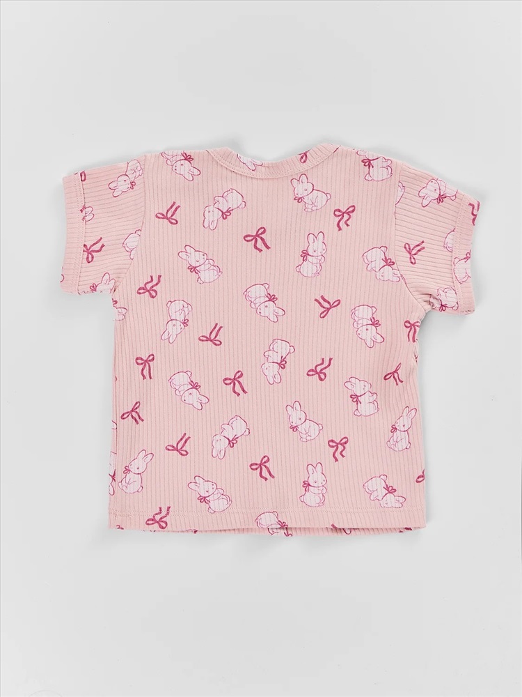 молочный +бантики и зайки на розовом