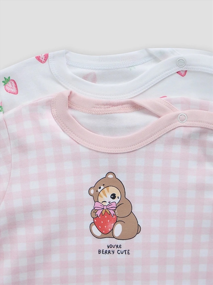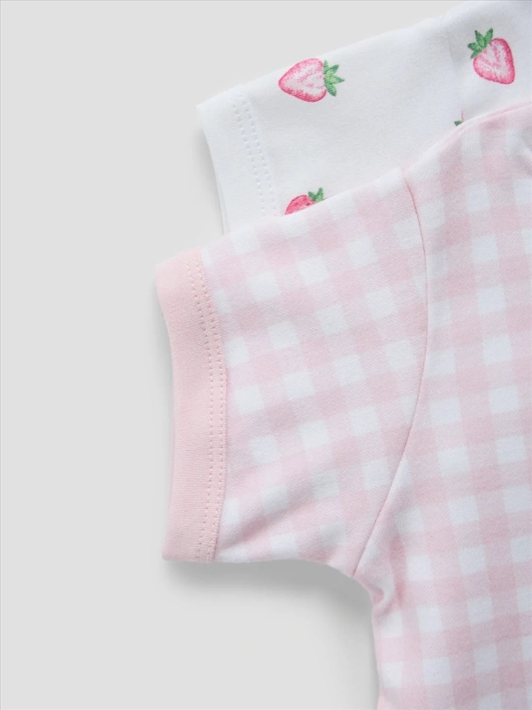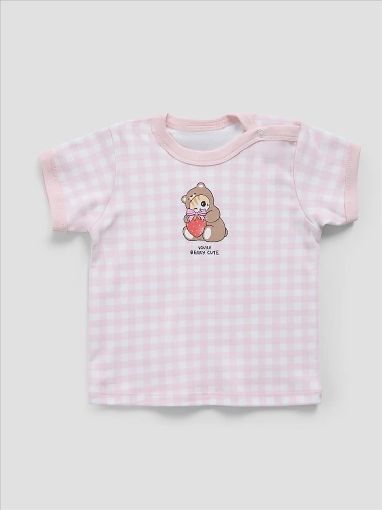 розовая клетка на белом +клубничка на белом
