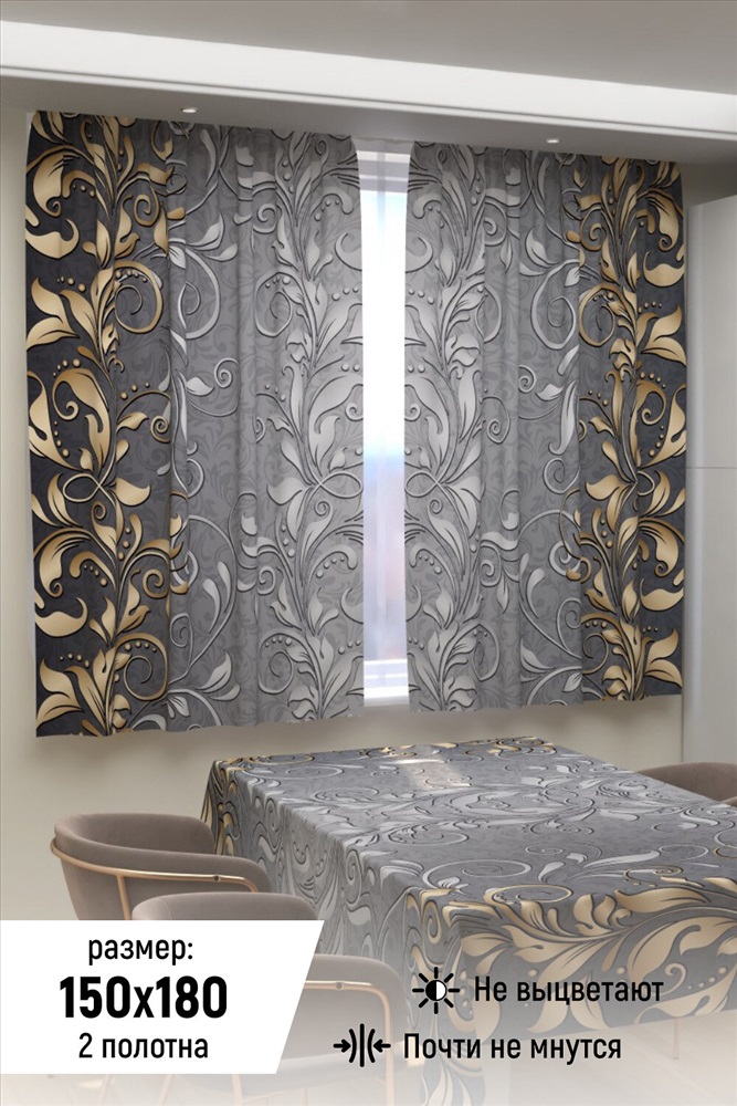 Размер: 2 шторы 150x270 см, 2 шторы 200x270 см, 2 подхвата