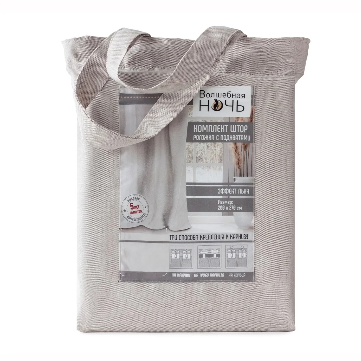 Размер: штора 165/270см - 2пр., штора 200/270см - 2пр., подхват – 2пр.