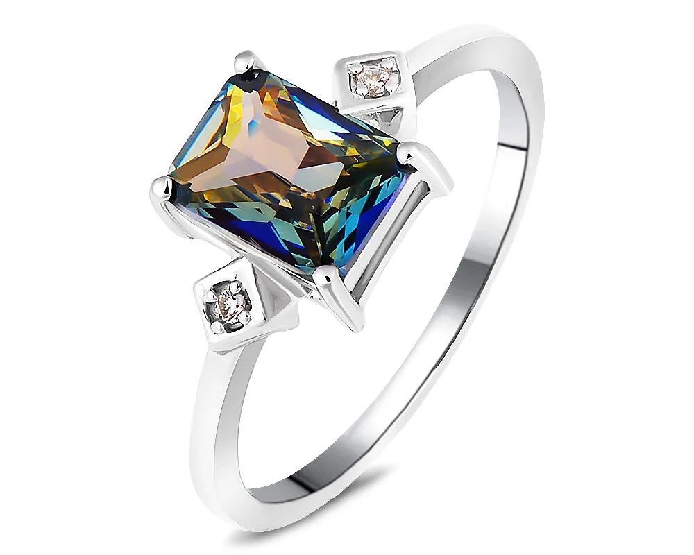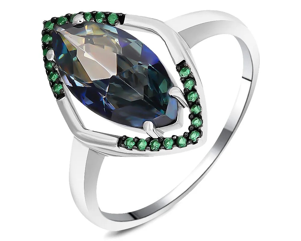 Кольцо, мистик кварц синий , наноизумруд, Камея