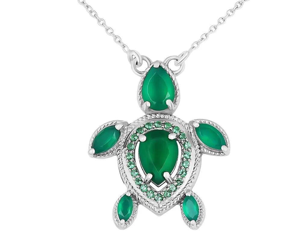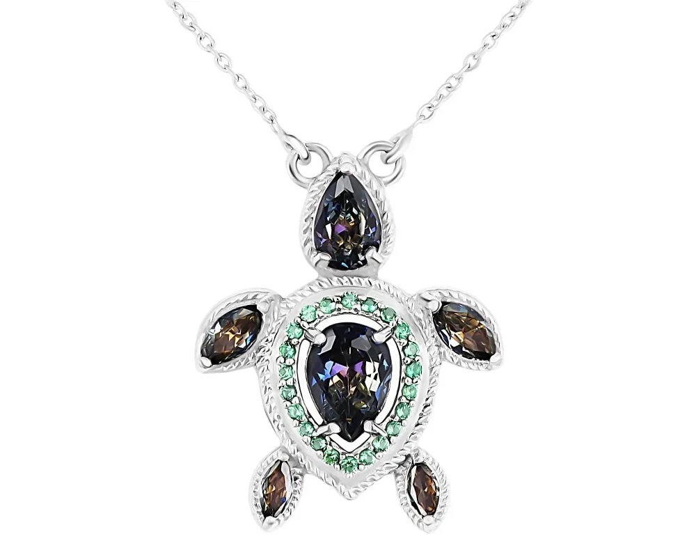 Колье, мистик кварц синий , наноизумруд, Черепаха