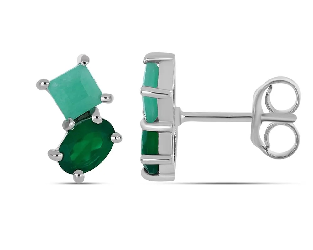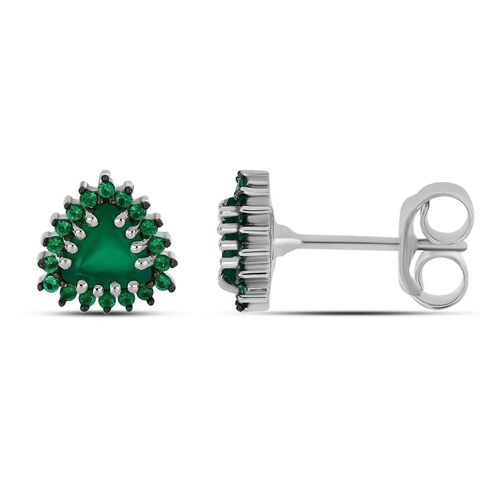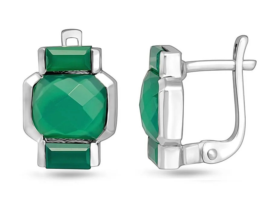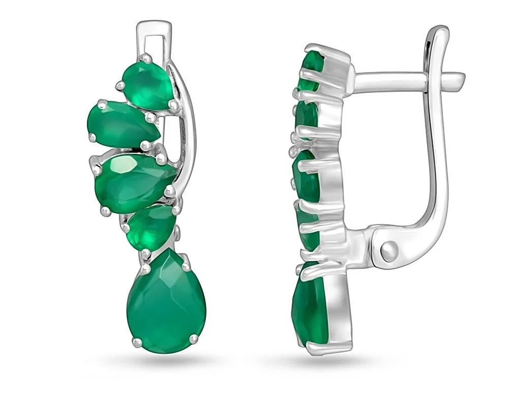 Серьги из серебра зеленый агат, наноизумруд, Алия