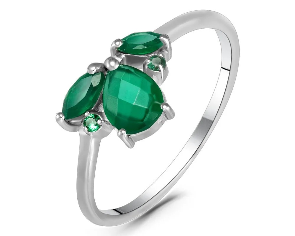 Кольцо, зеленый агат , наноизумруд, Шанталь