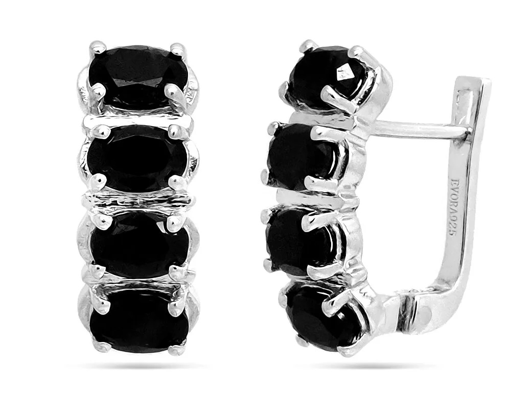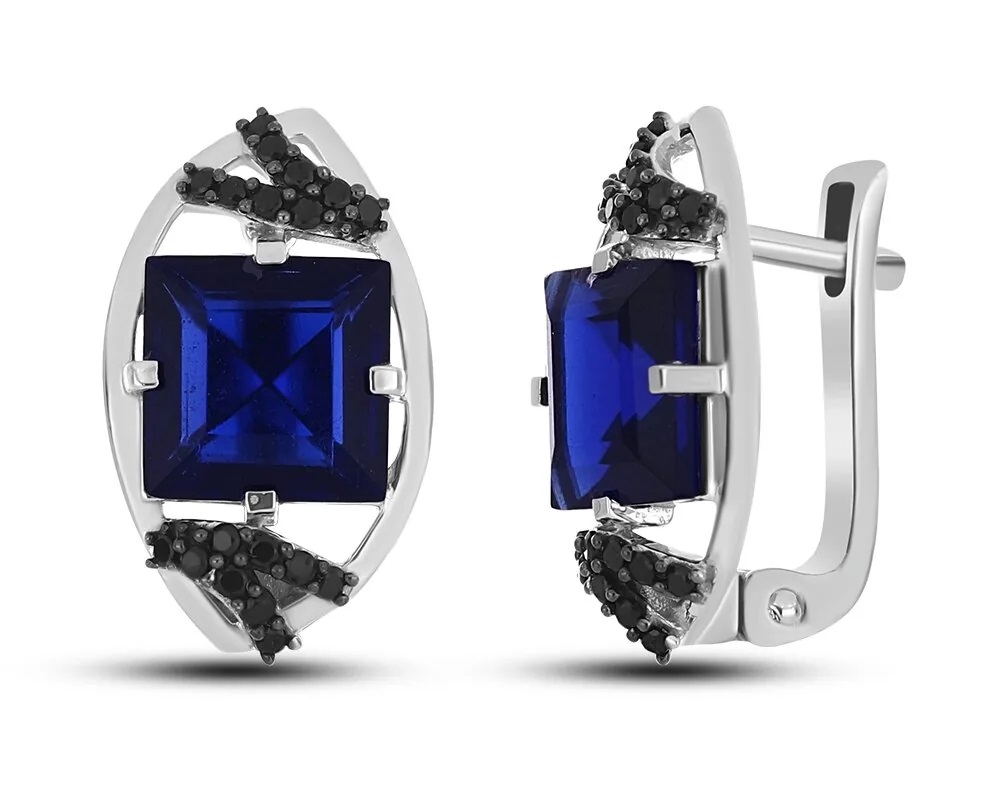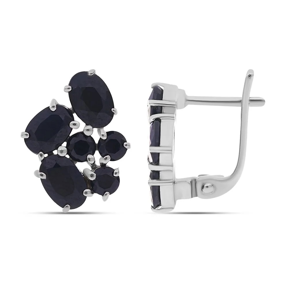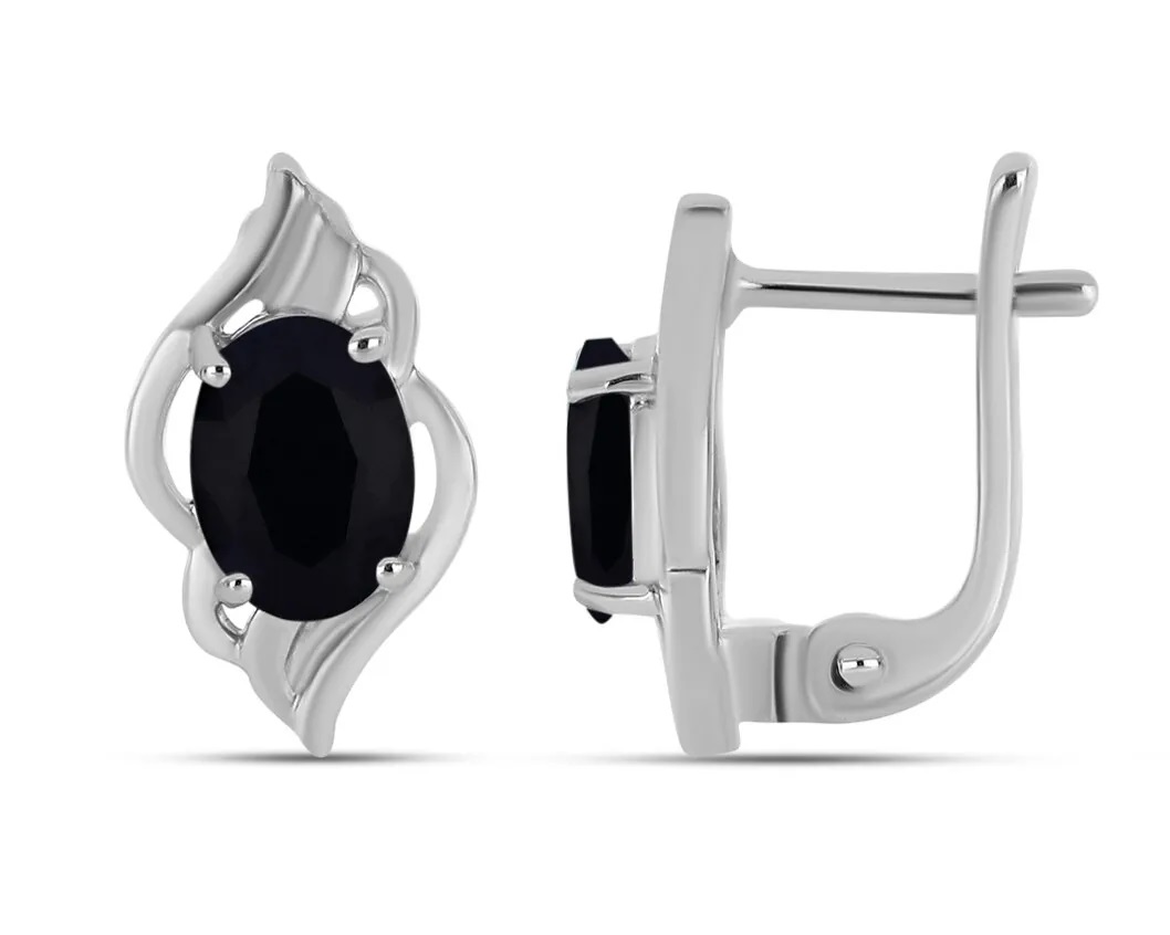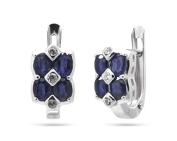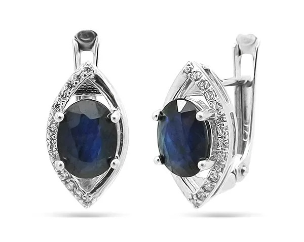 Серьги, 2 сапфир корунд овал 7х9мм/4.28 ct , 2 сапфир корунд маркиз 2х4мм/0.16 ct, Виталина