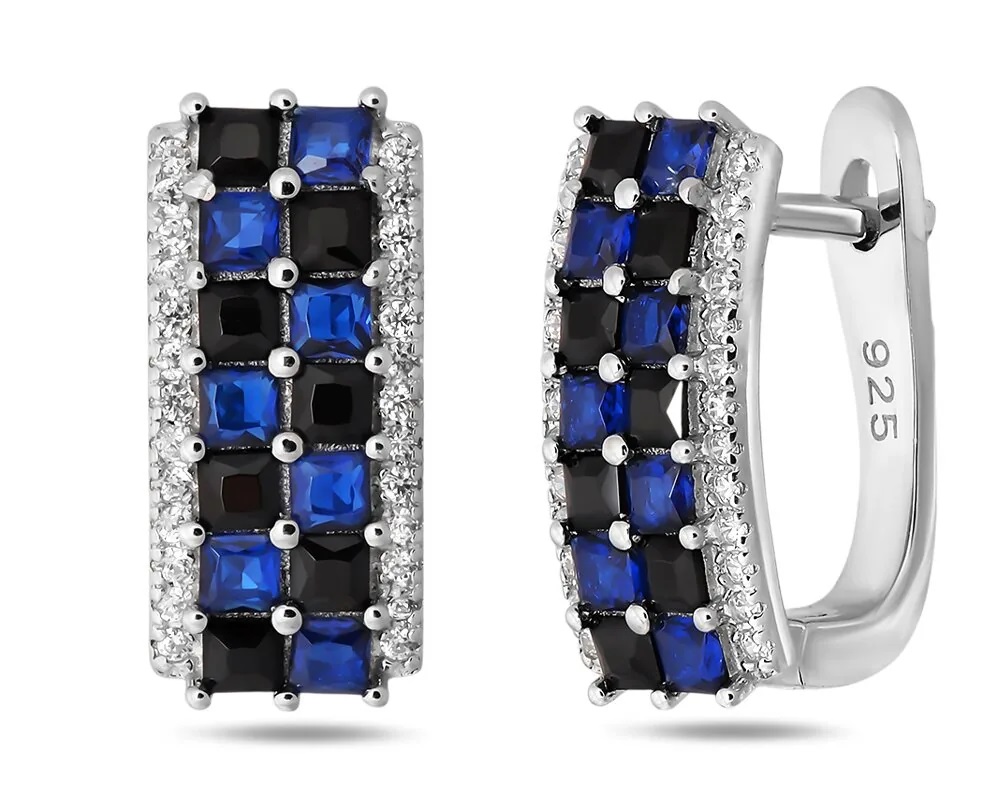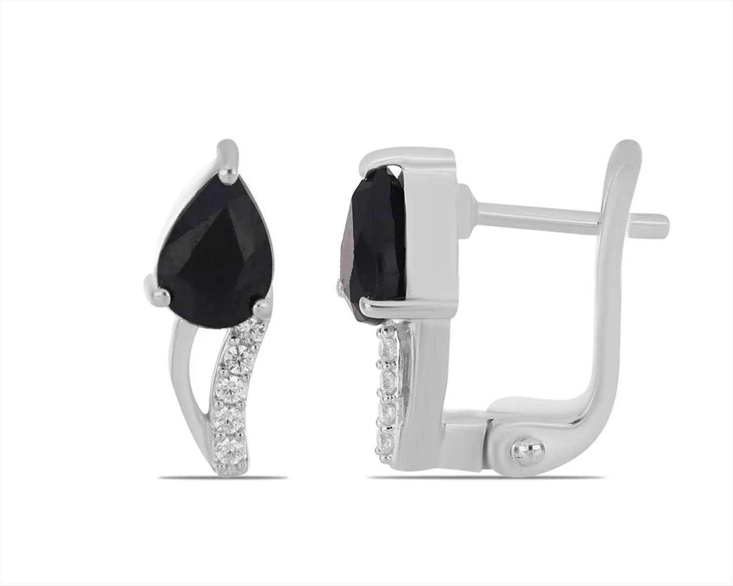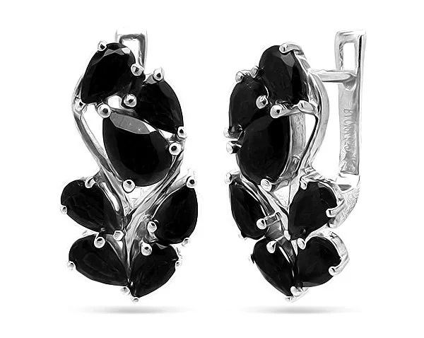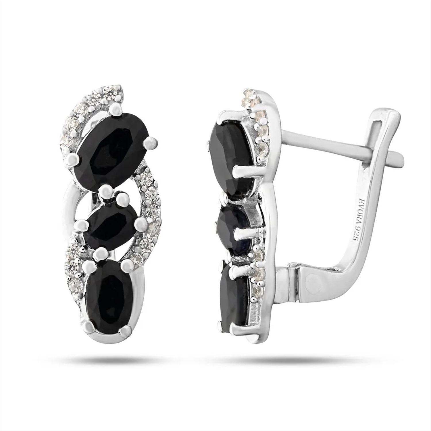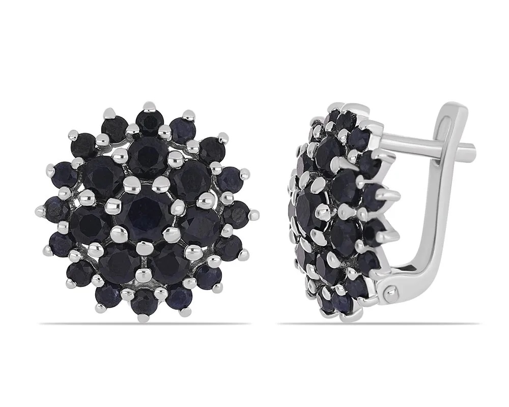 Серьги, 2 сапфир корунд овал 7х9мм/4.28 ct , 2 сапфир корунд маркиз 2х4мм/0.16 ct, Виталина