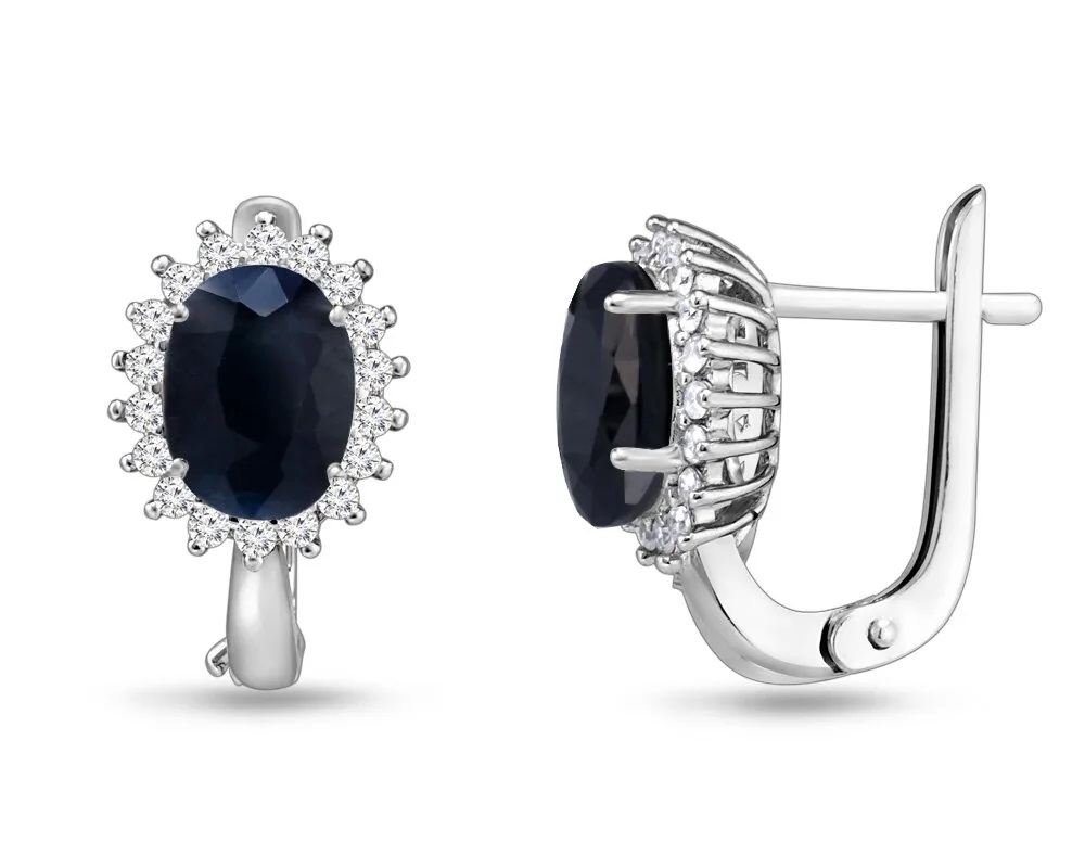Серьги, 2 сапфир корунд овал 8х10мм/6.21 ct, Увлечение