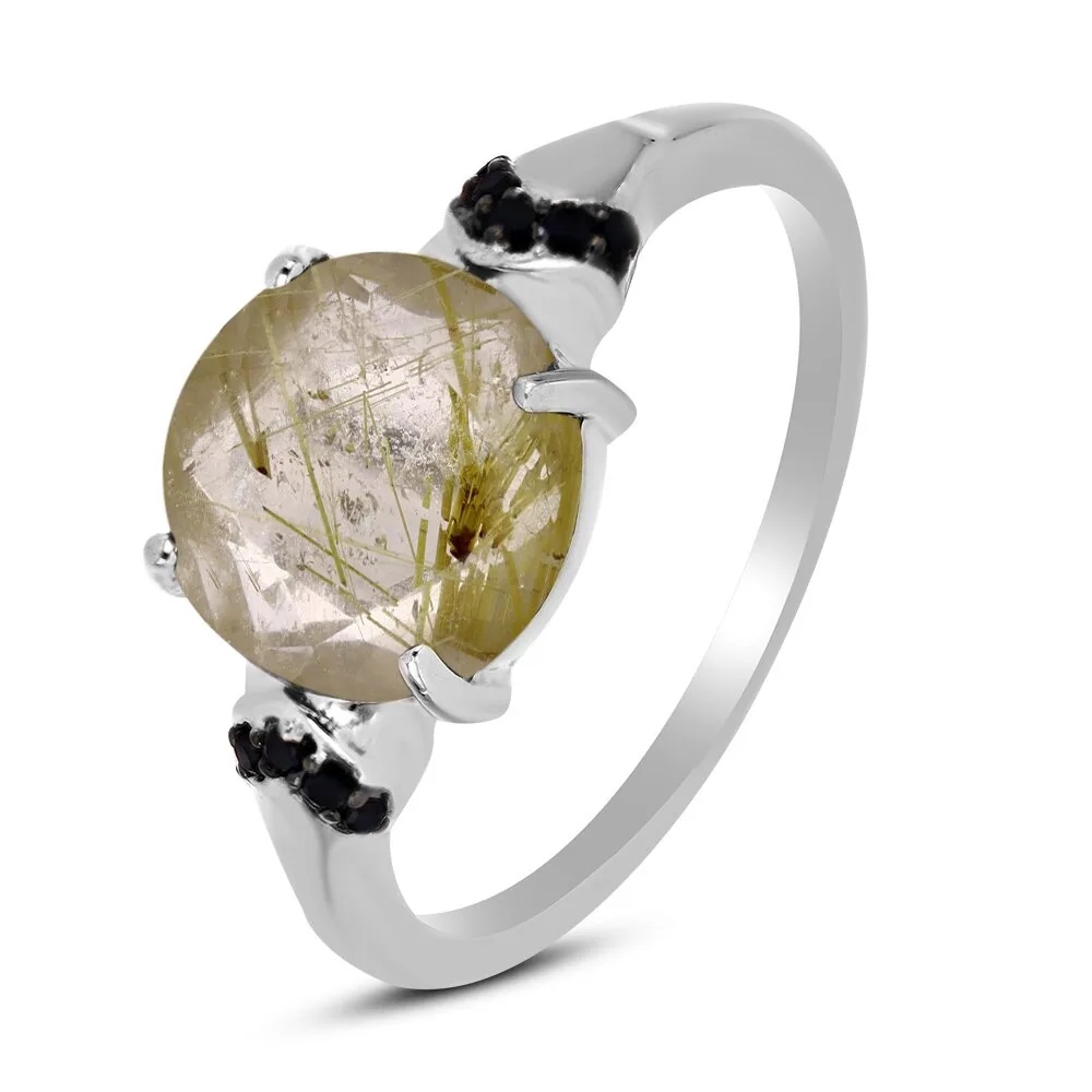Кольцо, рутиловый кварц черный , шпинель, Дума