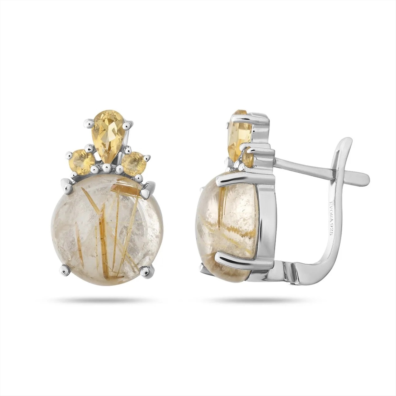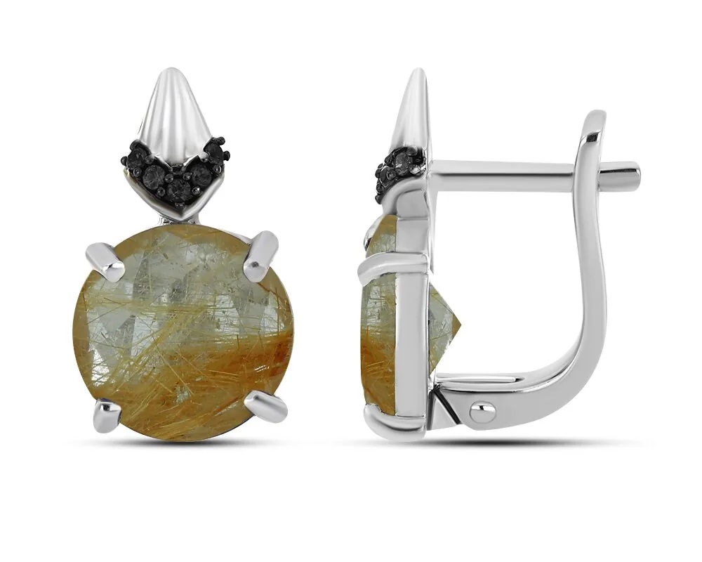 Серьги, рутиловый кварц золотой , шпинель, Мадрид