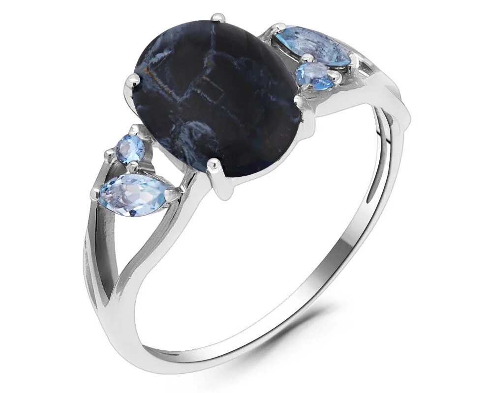 Кольцо из серебра авантюрин, сапфир ГТ, СПН4047с