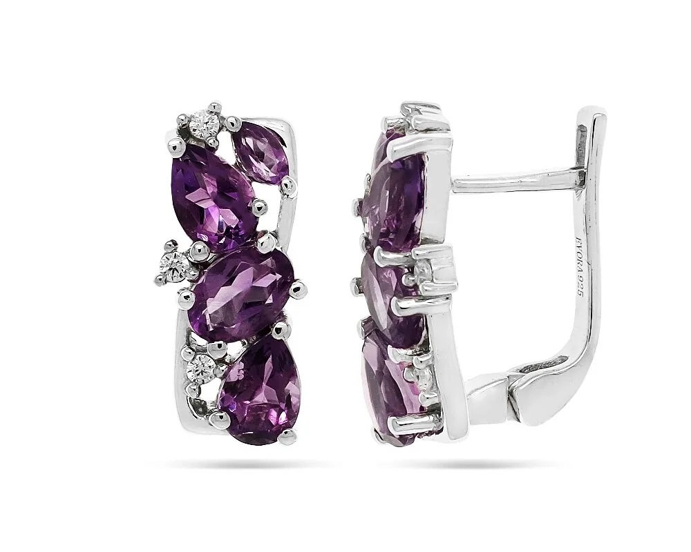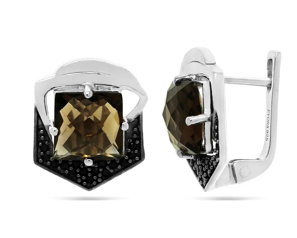 Серьги из серебра раухтопаз, шпинель, Жанис