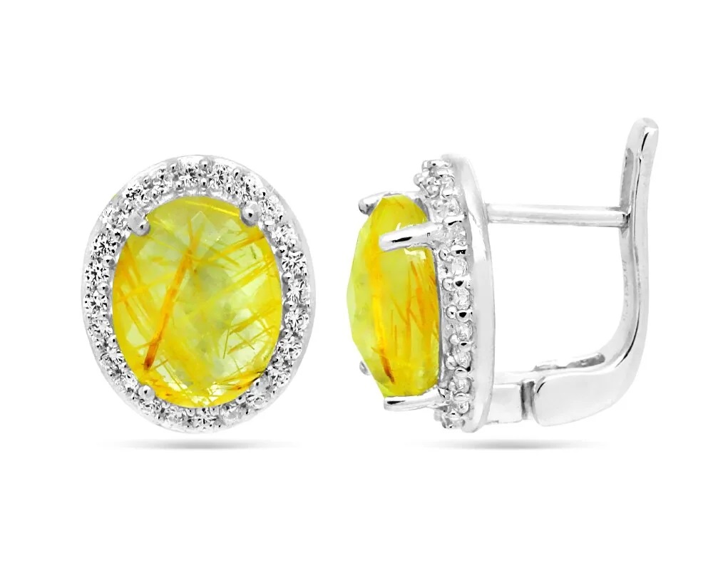 Серьги из серебра рутиловый кварц золотой, Вираж