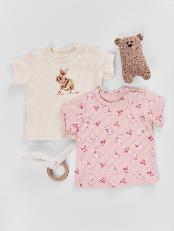 Артикул: 83108-2 молочный +бантики и зайки на розовом 88739