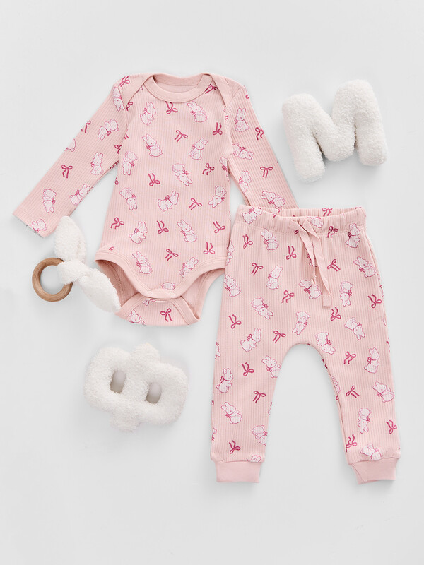 Артикул: 89408 бантики и зайки на розовом 1050