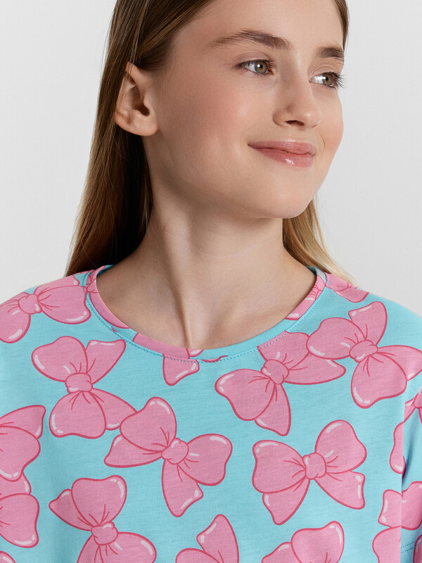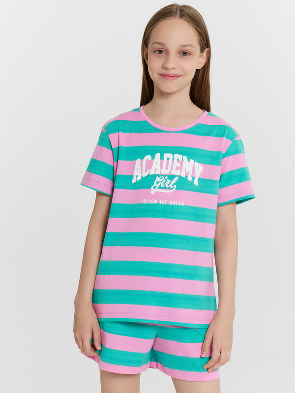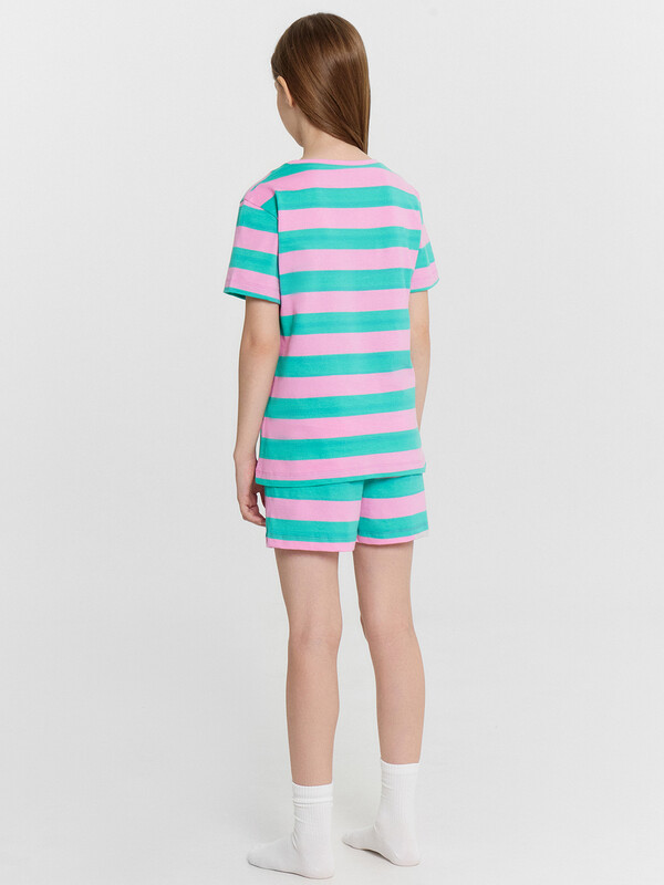 Артикул: 567727 розовая полоска на бирюзе +печать 1079