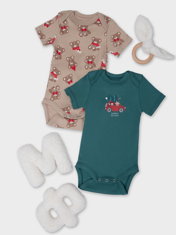 Артикул: 13015-1-2 НГ мишутки на бежевом +изумруд 99677
