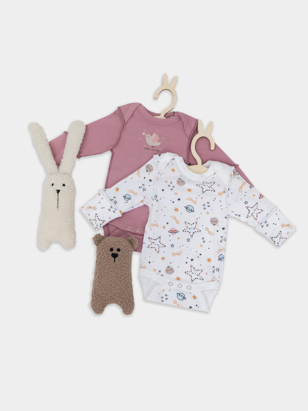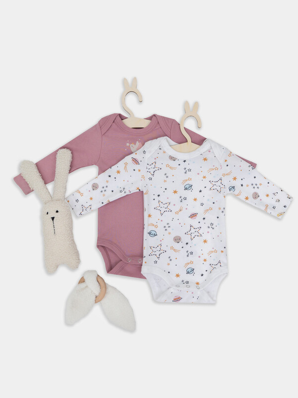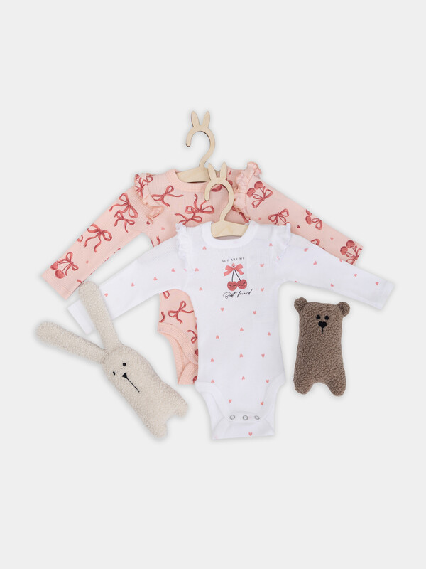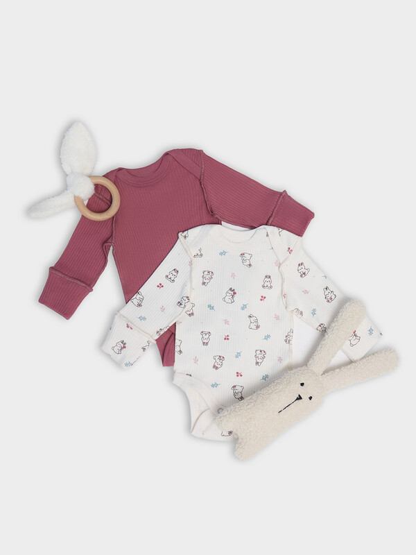 Артикул: 13015-1-2 молочный +бантики и зайки на розовом 88739