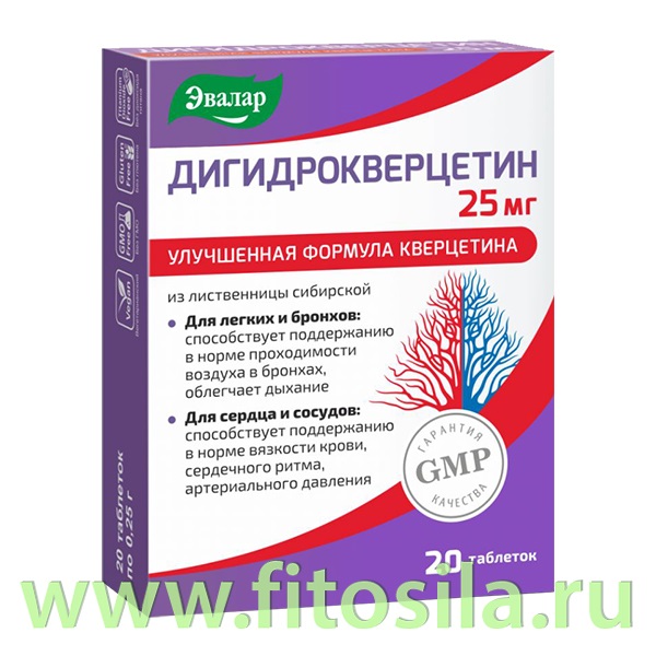 Дигидрокверцетин 25 мг, таб. №20 по 0.25 г (для сосудов и капилляров) Эвалар БАД