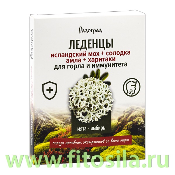 Карамель леденцовая с исландским мхом и солодкой со вкусом "Мята и имбирь", 10 шт  Радоград