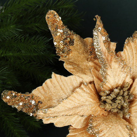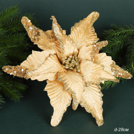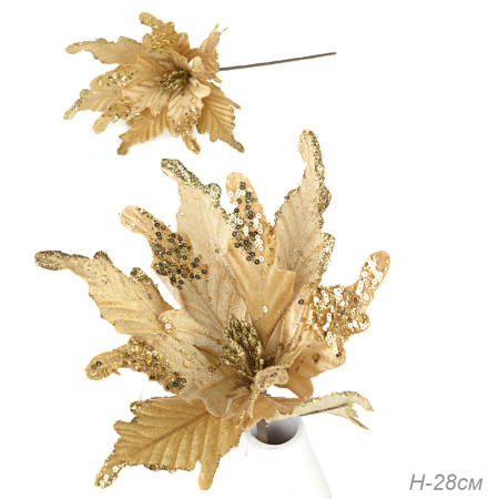 Цветок декоративный Пуансеттия 28 см золото / NG33-10 /уп 60/600/ 4 фото