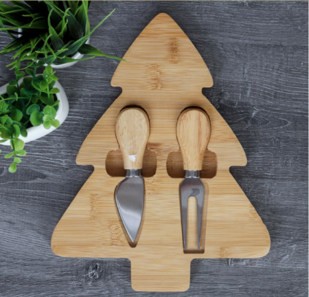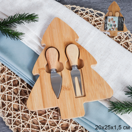 Доска-поднос Елка Новогодняя 20x25x1,5 см / KF-S12 /уп 48/ нож и вилка 2 фото