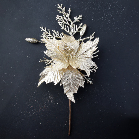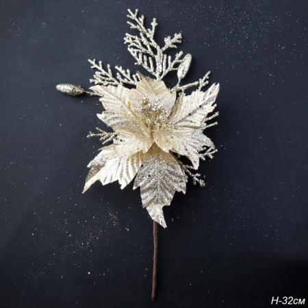 Цветок декоративный Пуансеттия 32 см золото / P7 /уп 48/480/ 2 фото